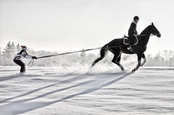 Oczywiście można zaszaleć na oklep w zwiewnej sukni, ale warto wcześniej sprawdzić jak koń reaguje na takie przebranie. Szczególnie gdy dojdzie do tego dłuższy szal, głaszczący konia po zadzie:)